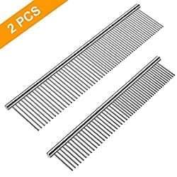 This Greyhound Comb on Amazon is a very effective dematting tool for dogs and can remove loose hair, tangles and mats. Rounded pin ends are gentle to the skin. This comb is made of stainless steel and is very durable. I’ve been grooming professionally with mine for 5 years so far. Great for all sized dogs and breeds with medium to long hair.