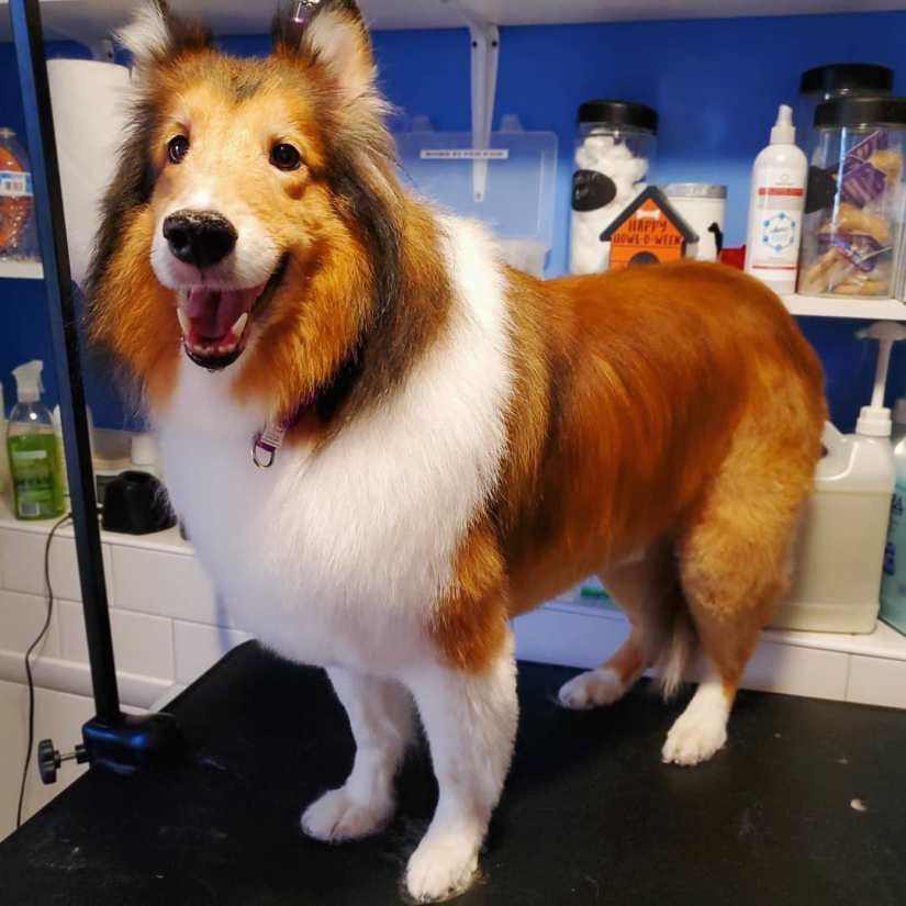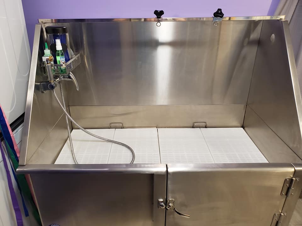 Check out the photos of our cozy salon. With our full sized table and large stainless steel pet grooming tub.