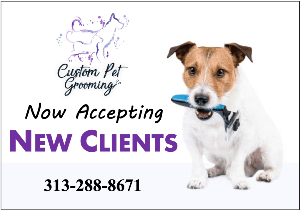 We are happy to announce that for a limited time we are accepting new clients! We would love to add clients to our schedule that are interested in one-on-one grooming in a relaxing home-based salon environment. Our clients are on a recurring schedule and are prebooked through the year. If you’re interested in getting your pet groomed with Custom Pet Grooming, text us at: 313-288-8671